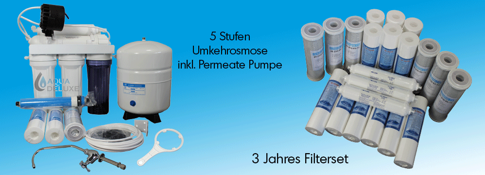 Lieferumfang:Umkehrosmose-Anlage12 Liter Metall-Vorratstank (Wasserkapazität netto ca. 9 Ltr.)5 Micron Prefilter-VorfilterPermeatpumpe inkl. Befestigungs Clips in 1 x schwarz, 1 x weiß, Schlauch (2 Meter)1 Micron Sediment-FilterKohle-Filter (G.A.C.)50 GPD Hochleistungsmembrane (190 L/Tag)In-line Aktivkohle-Nachfilter (Geschmacks- und Geruchsfilter)Wasserhahn mit DrehknaufLange Anschlussschläuche in weiß (NSF)Montage- & Anschlusszubehör (Kompletter Kaltwasseranschluss mit Hochwertiger Abfluss-Schelle)Anschluss für die Standard Kaltwasserleitung 3/8 Außen- und 1 /4" InnengewindeFilterschlüssel (Massive Ausführung)NSF und CE geprüft und zertifiziertBedienungsanleitung in deutschRechnung