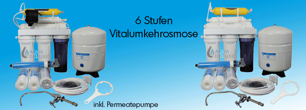 Dieses Filtrationssystem ist entwickelt für einen Wasserdruck von mindestens 3,0 bar. Die Anlage benötigt keinen Strom oder Chemikalien und liefert durch modernste Technologie hervorragende Wasserqualität. Die Anlage entfernt Chlor genauso wie unangenehmen Geruch und Sediment bis zu 99%. Die Umkehr-Osmose entfernt des Weiteren Verschmutzungen durch Blei, Kupfer, Barium, Quecksilber, Natrium, Kadmium, Fluor, Nitrat, Nitrit, Selen, Asbest, Pestizide und Sulfate. Weiters werden alle anorganischen Mineralien entfernt und das Wasser enthärtet. Unser System kommt komplett mit einem Vorratstank, Installationsmaterial und einem "Langhals - Wasserhahn".